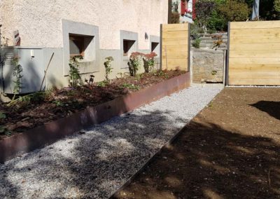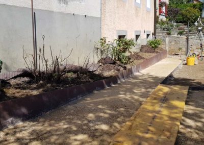 Création de bacs et bordures en tôles d’acier entièrement façonnées et soudées sur place, remise en état d’un chemin en gravier de ‘La Poissine’